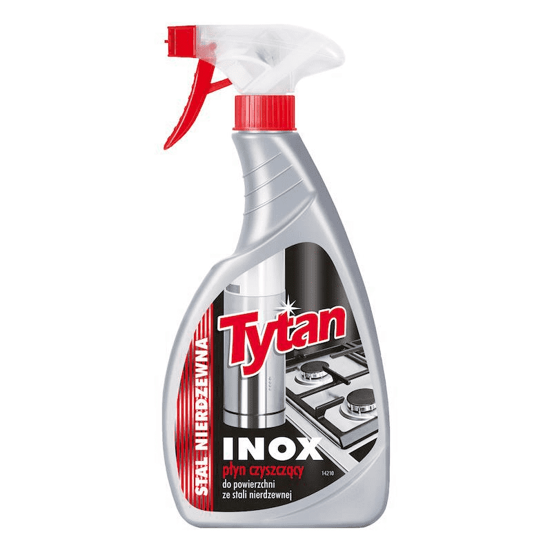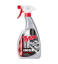 „Tytan Inox“ nerūdijančio plieno purškiklis 500 g yra produktas, skirtas nerūdijančio plieno paviršiams valyti. Nesvarbu, ar valote šaldytuvą, ar kriauklę, „Inox“ paliks paviršių blizgantį ir be dryžių. Puikiai tinka šaldytuvų, mikrobangų krosnelių, viryklių, kaitlenčių šoninių panelių ir orkaičių plieninėms dalims. Jis taip pat skirtas reguliariam liftų vidaus, baliustradų, durų rankenų ir karnizų valymui ir priežiūrai. Jis taip pat valo ir apsaugo puodų, laivybos įrangos ir plieninių dekoratyvinių elementų išorę. Rekomenduojame naudoti šluostę arba minkštąją kempinės pusę, kad nesubraižytumėte blizgančių paviršių. Produkto formulė ir specialus purkštuvas leidžia pašalinti net senus, pridžiūvusius nešvarumus.